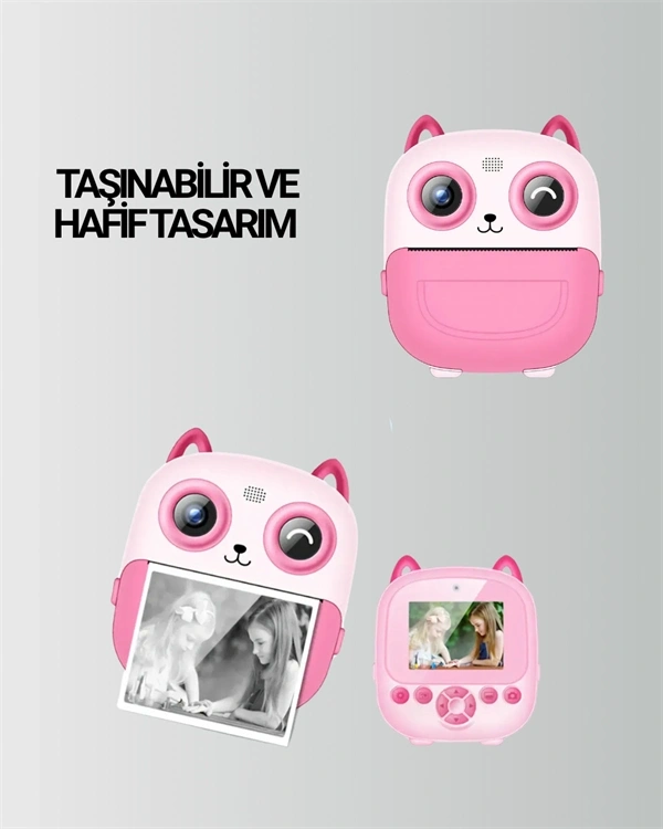 Cihazın en dikkat çeken özelliklerinden biri, mürekkep gerektirmeyen yüksek çözünürlüklü termal yazıcısıdır. 2000dpi çözünürlükte siyah-beyaz fotoğraflar saniyeler içinde yazdırılabilir. Yazıcı bölümü bakım gerektirmez ve oldukça ekonomiktir.Bu özellik, çocuklar için hem yaratıcı hem de öğretici bir kullanım sunar. Fotoğraf çekmenin hemen ardından çıktısını almak, özellikle küçük kullanıcılar için benzersiz bir deneyim sunar. Aynı zamanda sanat projeleri, günlük notlar veya nostaljik anı koleksiyonları için mükemmeldir.