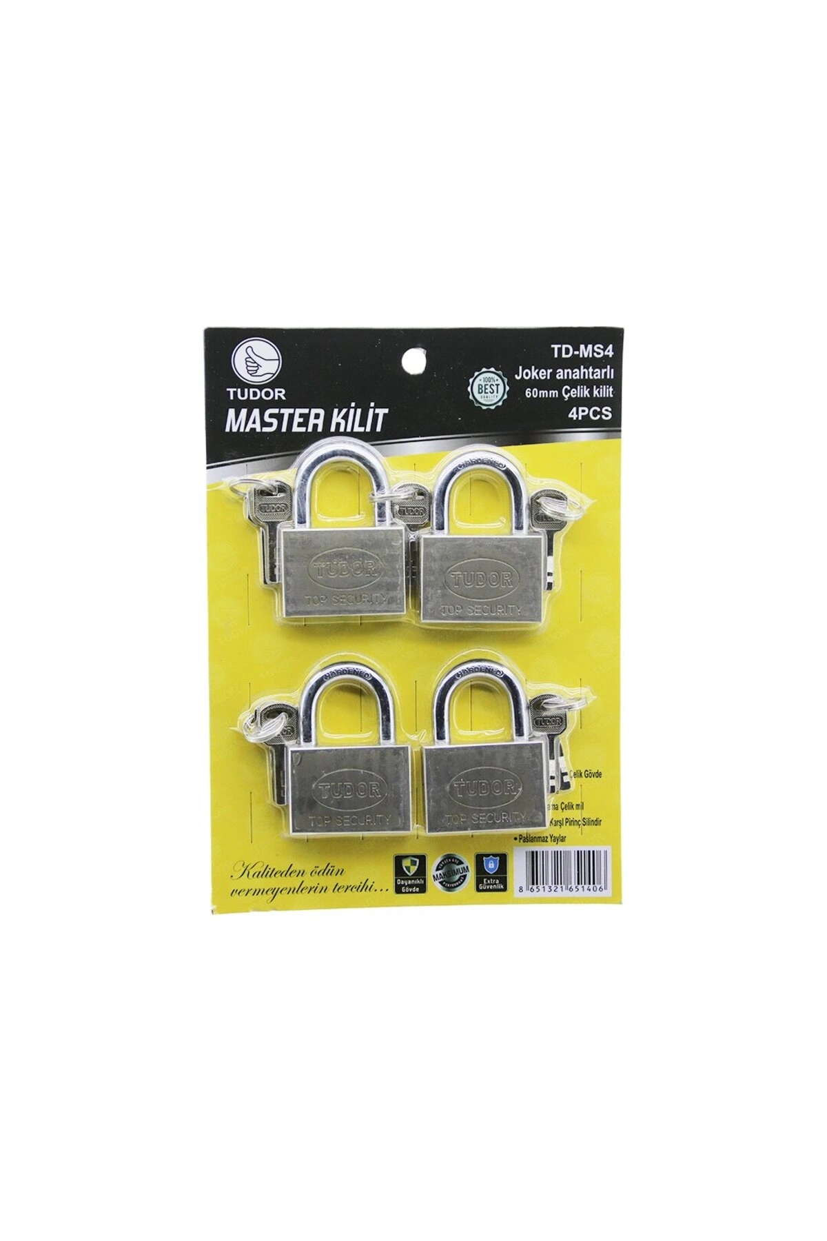 TUDOR TD-MS4 MASTER 4PCS JOKER ANAHTARLI=TEK ANAHTARLA 4 KİLİT AÇ 60MM - GRİ KISA KANCALI ÇELİK ASMA KİLİT