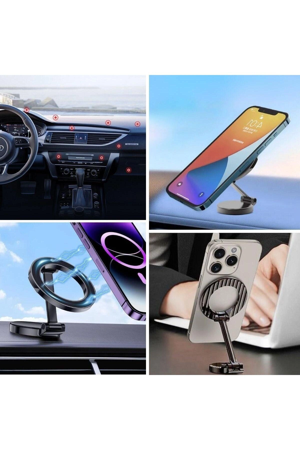 Tüm Telefonlarla Uyumlu Manyetik Araç Telefonu Tutacağı Katlanır 360 Derece Dönen Telefon Standı Tüm Telefonlarla Uyumlu Manyetik Araç Telefonu Tutacağı Katlanır 360 Derece Dönen Telefon Standı, sürüş sırasında telefonunuzu güvenli ve pratik bir şekilde kullanmanızı sağlayan bir araç içi aksesuardır.; Modern ve kompakt tasarımı sayesinde aracınızın içinde fazla yer kaplamaz, kullanımı kolay ve şık bir çözüm sunar.; Özellikler Güçlü Manyetik Tutuş: Telefonunuzu sabit ve güvenli bir şekilde tutan güçlü mıknatıslar içerir.; Hangi açıda olursa olsun telefonunuz yerinden kaymaz ve güvenli bir şekilde yerinde kalır.; Katlanabilir Tasarım: Kullanılmadığında kolayca katlanarak yer kaplamaz.; İhtiyacınız olduğunda ise hızlıca açılabilir, bu da aracınızda düzeni korumanıza yardımcı olur.; 360 Derece Dönen Başlık: Telefonunuzu istediğiniz açıya göre ayarlayabilir, yatay veya dikey modda kullanabilirsiniz.; Bu özellikle navigasyon kullanımı için idealdir.; Evrensel Uyumluluk: Tüm akıllı telefonlarla uyumludur.; İster iPhone, ister Android telefon kullanıyor olun, bu stand ile uyumlu bir kullanım sağlayabilirsiniz.; Kolay Kurulum: Araç içi havalandırma ızgarasına veya düz bir yüzeye kolayca monte edilebilir.; Kurulumu için herhangi bir ek alet gerektirmez.; Şık ve Kompakt Tasarım: Minimalist tasarımı sayesinde aracınızın iç dekorasyonuna uyum sağlar ve göz yormaz.; Avantajlar Kolay Erişim: Telefonunuzu göz hizasında tutarak, sürüş sırasında güvenli bir kullanım sağlar.; Navigasyon veya müzik dinleme gibi işlemleri daha kolay yapabilirsiniz.; Yer Tasarrufu: Kompakt ve katlanabilir tasarımı sayesinde aracınızın içinde fazla yer kaplamaz ve kullanım kolaylığı sunar.; Esnek Kullanım: 360 derece dönebilen başlığı sayesinde telefonu istediğiniz açıda kullanabilirsiniz, bu da sürüş konforunuzu artırır.; Güvenli Tutuş: Güçlü manyetik yapısı sayesinde telefonunuzu güvenle tutar ve sarsıntılara karşı korur.; Kullanım Alanları Gündelik Sürüş: Şehir içi veya uzun yolculuklar sırasında telefonunuzu kolayca kullanmanızı sağlar.; Navigasyon Kullanımı: Navigasyon uygulamalarını güvenli bir şekilde kullanarak, yol tariflerini takip edebilirsiniz.; Multimedya Kullanımı: Müzik dinleme veya eller serbest arama yapma gibi işlemleri daha güvenli hale getirir.; Paket İçeriği 1 adet Manyetik Araç Telefonu Tutacağı Katlanır 360 Derece Dönen Telefon Standı