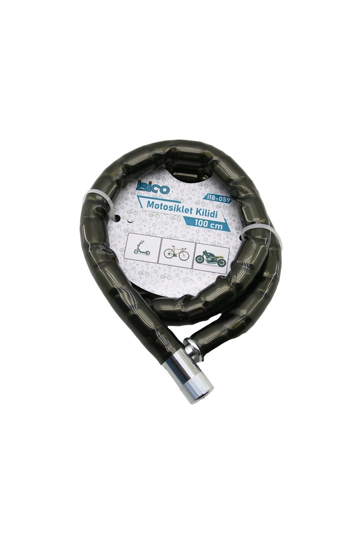 ZİNCİRLİ ANAHTARLI MOTOR - BİSİKLET KİLİT BEZ KILIFLI AÇ-KAPA KİLİT KAPAK 100CM (5324)