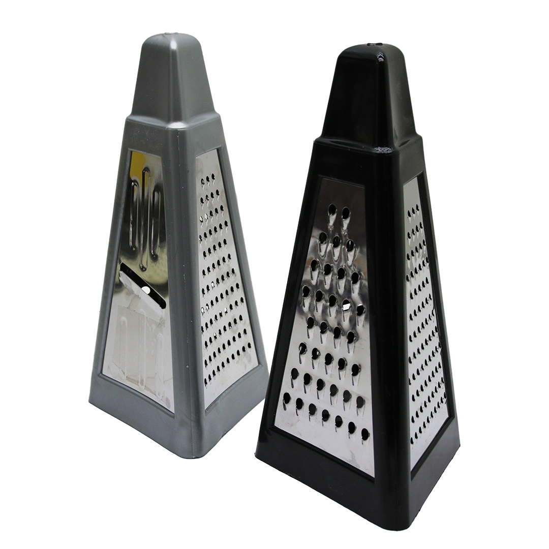 PİRAMİT METAL MUTFAK RENDESİ ÇİFT YÖNLÜ RENKLİ PLASTİK ÜSTTEN TUTMALI (5324)