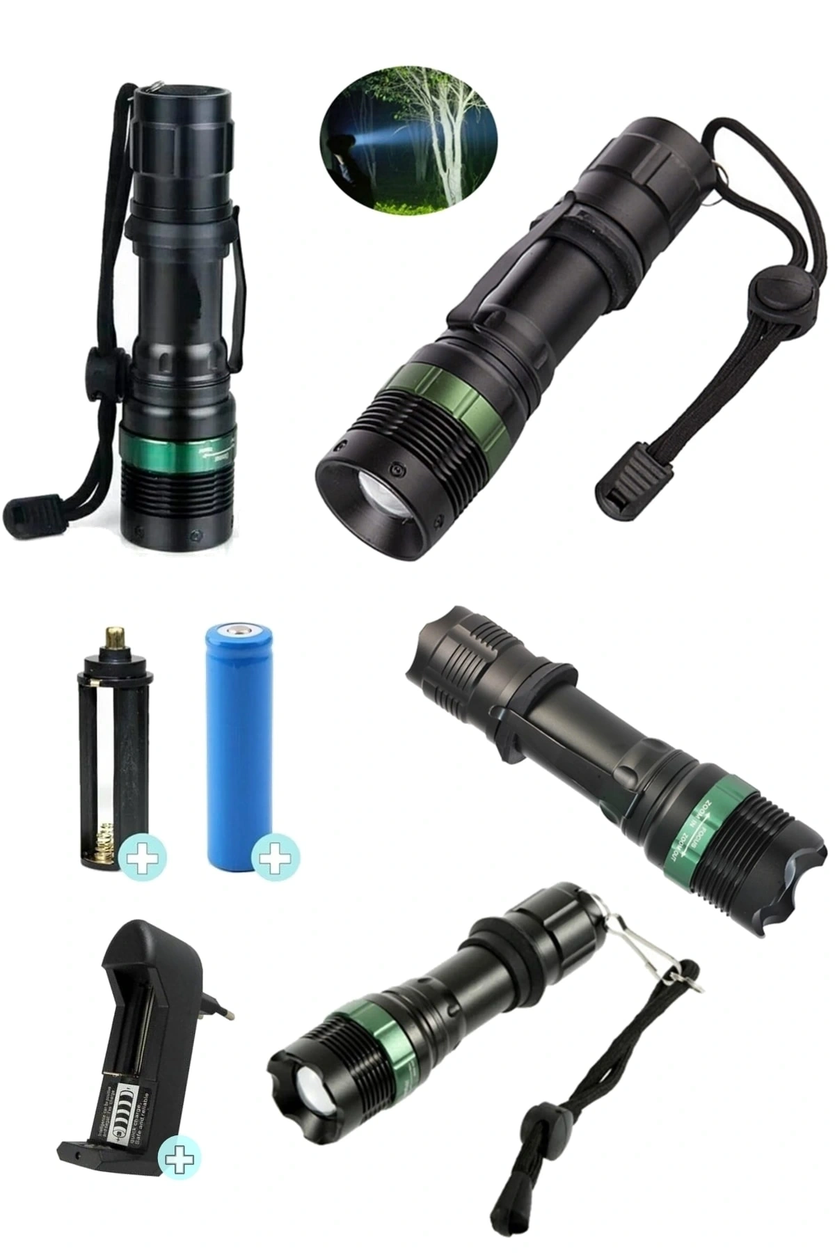 Ultra Güçlü 3 Modlu Metal Şarjlı El Feneri Cree T6 800 Metre + Şarjlı Pil
