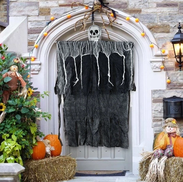 Ürpertici Kuru Kafa Korku Hayalet Saçaklı Dekor 90x50 cm (5324)