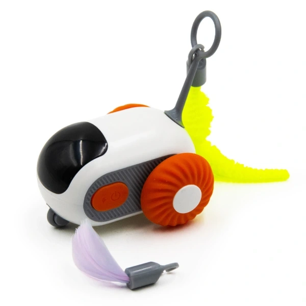 UZAKTAN KUMANDALI ROBOT KEDİ OYUNCAĞIÜrün ÖzellikleriUzaktan kumandalı robot kedi oyuncağı, kedilerin enerjisini atmasına ve aktif kalmasına yardımcı olan eğlenceli bir üründür. Şarjlı yapısı sayesinde pille uğraşmadan pratik bir kullanım sunar. Uzaktan kumandası ile ileri, geri, sağa ve sola yönlendirilebilir, böylece kedinizin ilgisini dinamik bir şekilde çekebilirsiniz. Üzerinde bulunan renkli kuyruk aparatı sayesinde uzun süre sıkılmadan oynanabilir. Yalnızca düz zeminler ve ince halılar için uygundur, kalın halılarda düzgün çalışmaz. Hafif ve kompakt yapısı sayesinde evde rahatça kullanılabilir. Kediler için fiziksel aktiviteyi teşvik eden, aynı zamanda etkileşimli oyun deneyimi sağlayan bu oyuncak hem eğlenceli hem de faydalı bir üründür.Paket İçeriği1 Adet Uzaktan Kumandalı Robot Kedi Oyuncağı