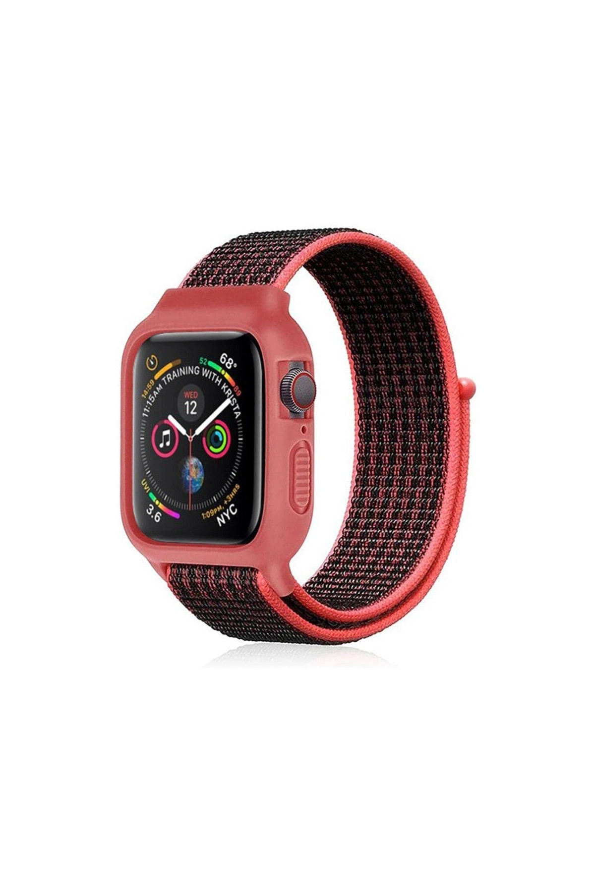 Watch 38mm Hasırlı Cırtcırtlı Kasalı Kordon (SAAT DEĞİLDİR) - Siyah-pembe