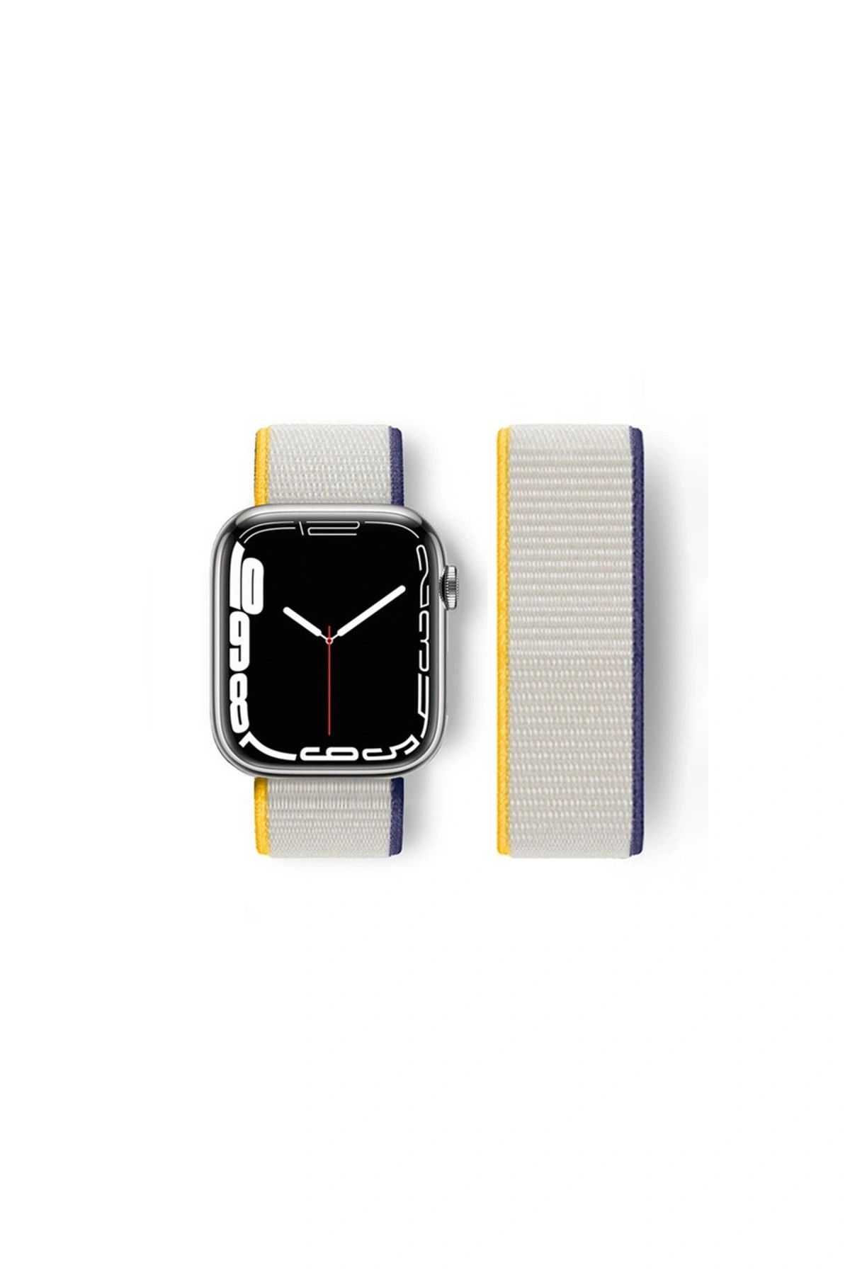 Watch 38mm Hasırlı Cırtcırtlı Kordon (SAAT DEĞİLDİR) - Sarı-beyaz