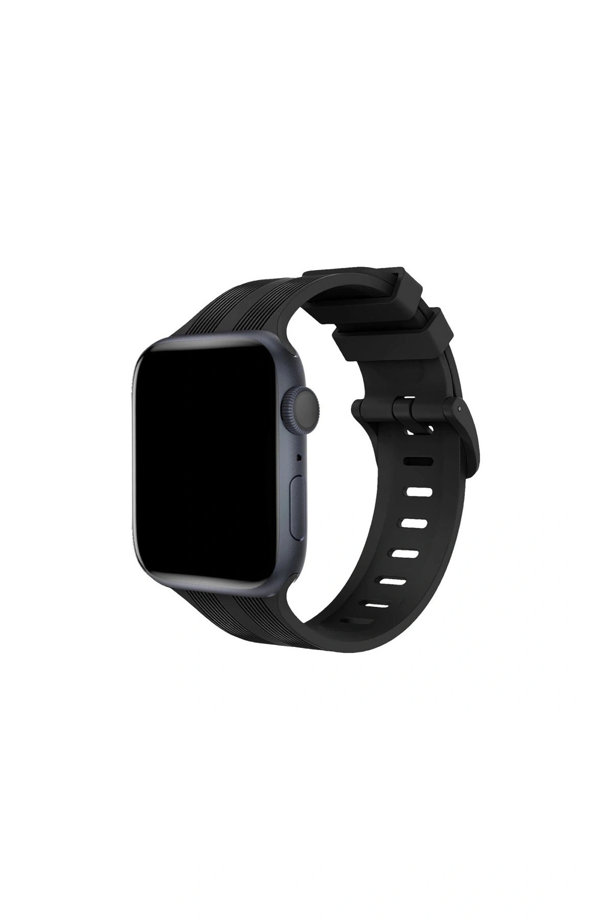 Watch 38mm Kr408 Çizgili Silikon Kordon (SAAT DEĞİLDİR) - Siyah
