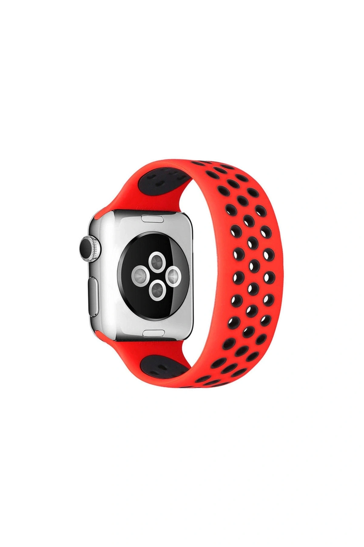 Watch 42mm Ayarlı Delikli Silikon Kordon (SAAT DEĞİLDİR) - Kırmızı-siyah