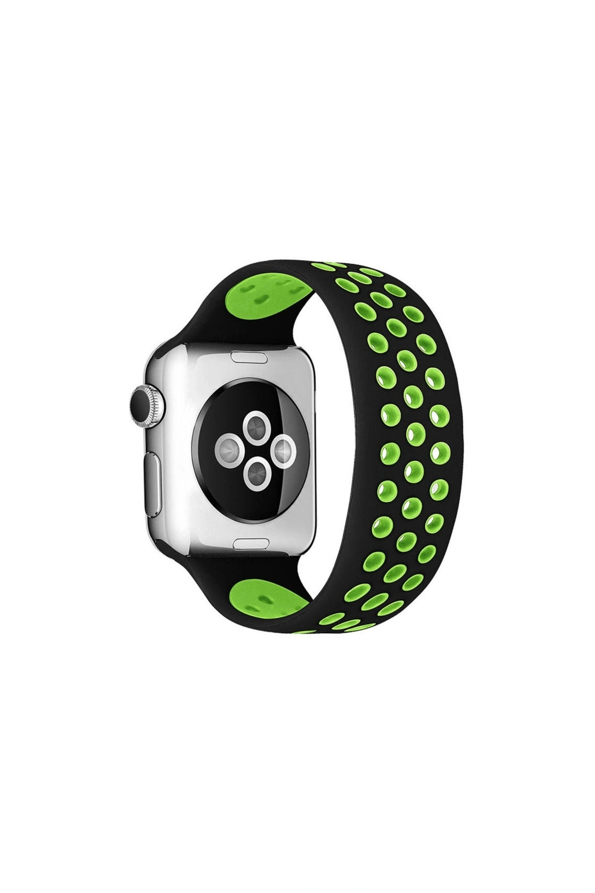 Watch 42mm Ayarlı Delikli Silikon Kordon (SAAT DEĞİLDİR) - Siyah-yeşil