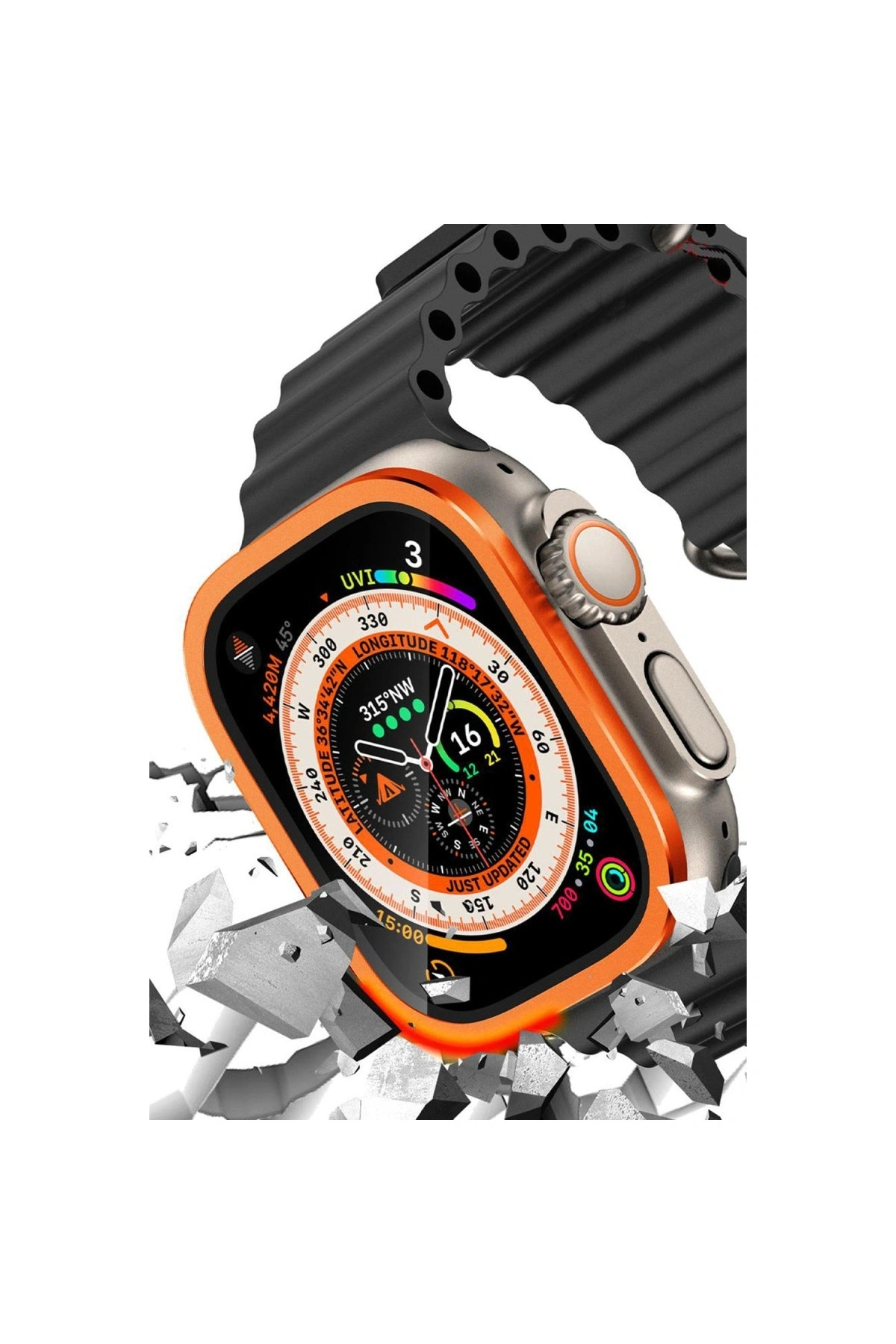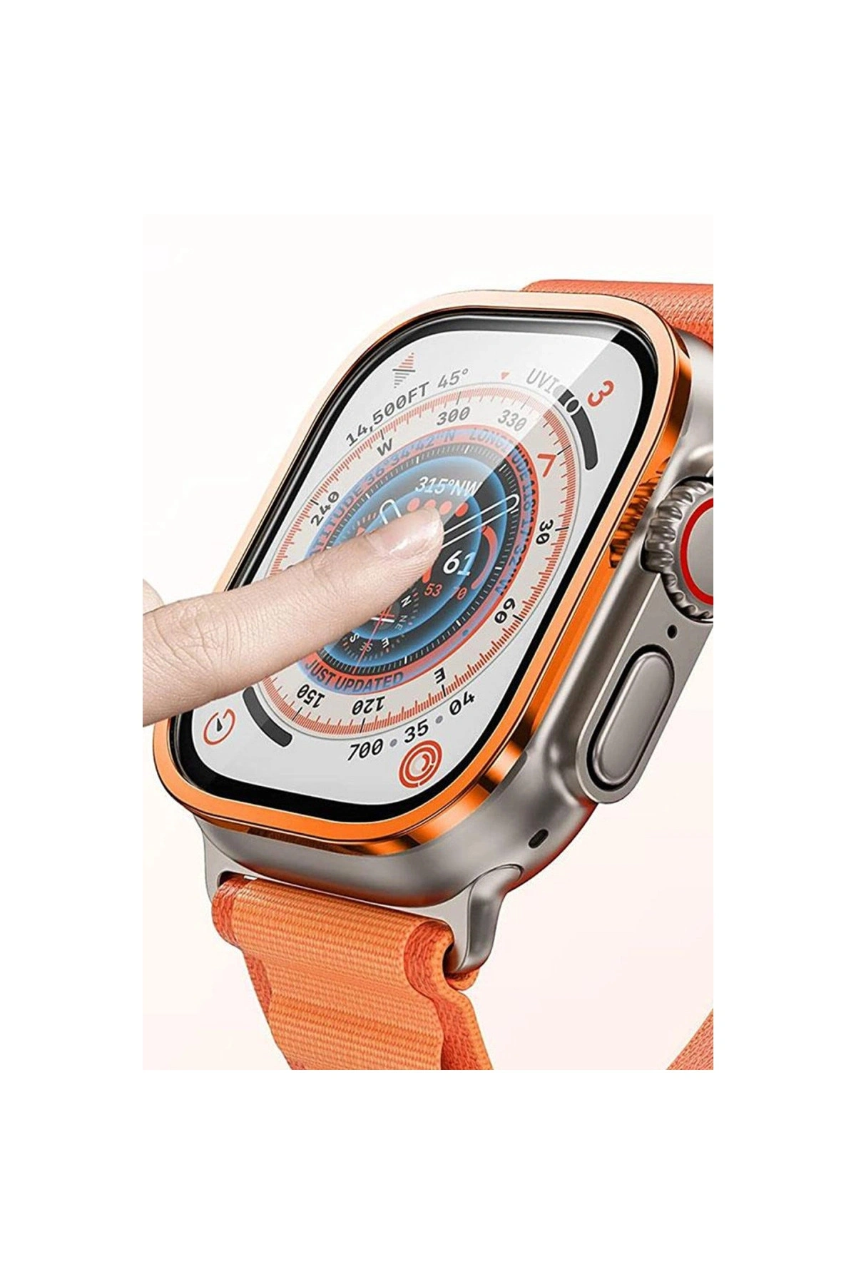 Watch Ultra 49mm Alüminyum Kasa Cam Ekran Koruyucu - Turuncu