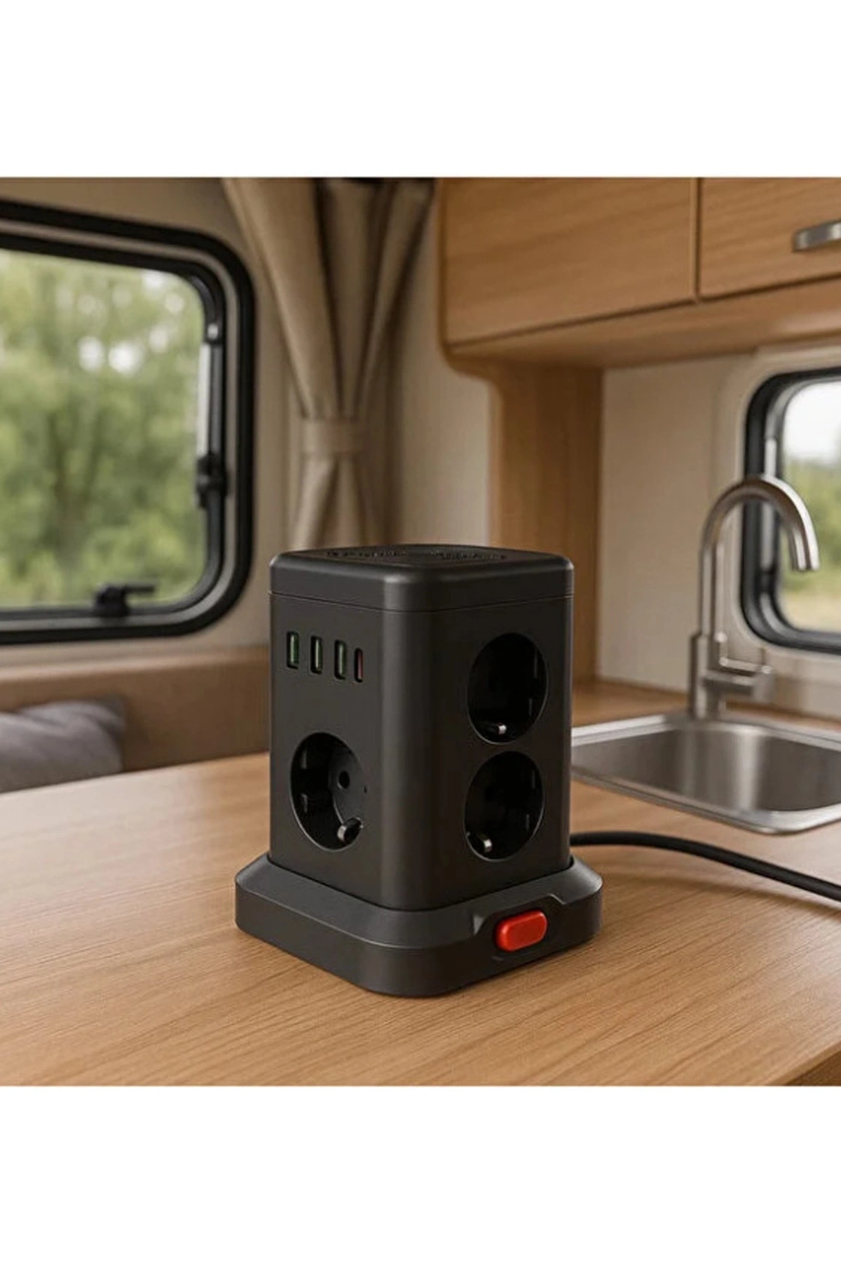 Bu kompakt kule tipi çoklu priz, hem estetik hem de işlevselliği bir araya getirir. 3 USB-A ve 1 Type-C çıkışı sayesinde telefon, tablet ve diğer cihazlarınızı aynı anda şarj edebilirsiniz. Akım koruma sistemiyle elektronik cihazlarınızı aşırı gerilimden korur. Tek tuşla kolayca açıp kapatabileceğiniz anahtarı, kullanımı pratik hale getirir. Ev, ofis, otel odası, karavan gibi her ortamda şık görünüm ve maksimum verim sağlar.