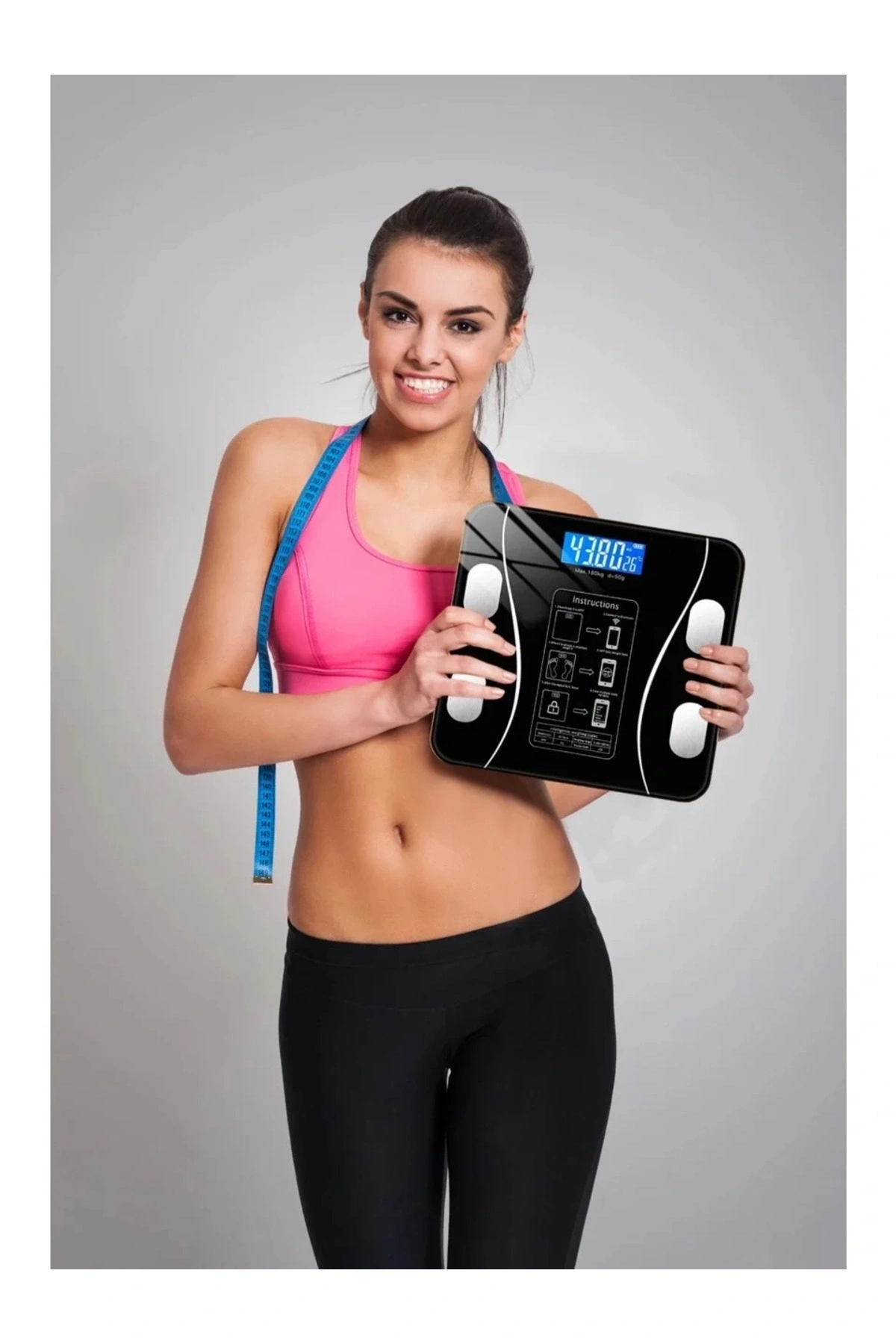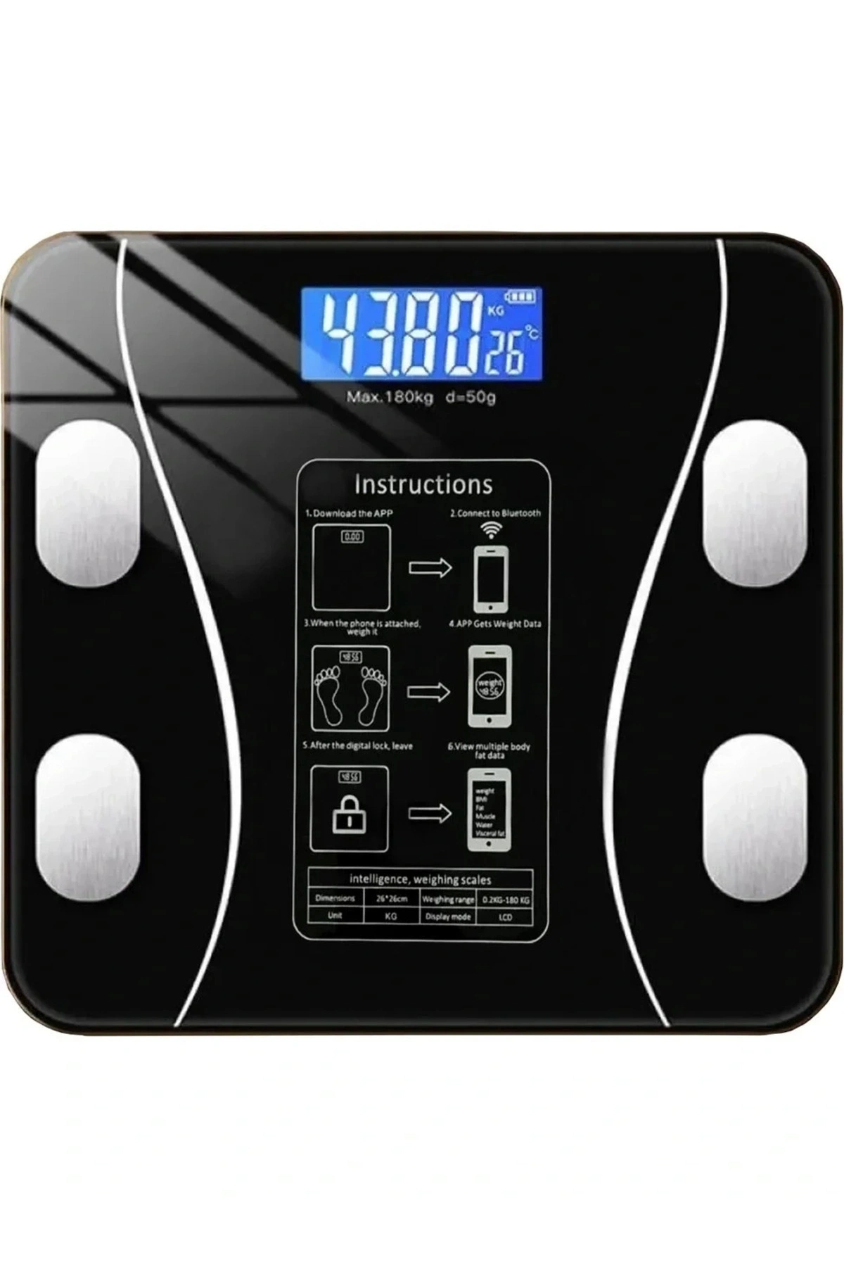 Yağ Ölçer Fonksiyonlu Dijital Baskül Elektronik Tartı Akıllı Bluetooth Lcd Dijital Ekran Ev Vücut (5324)