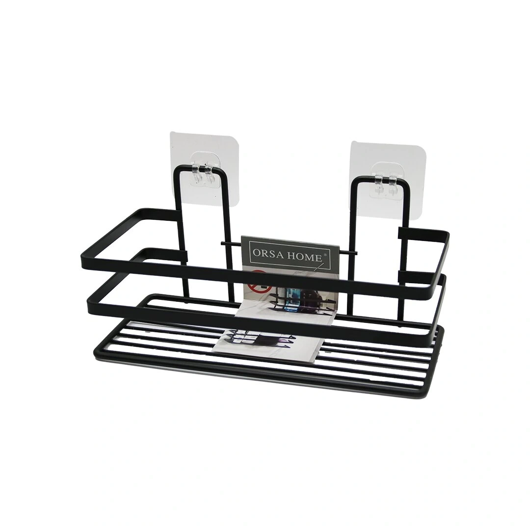 YAPIŞKANLI ASKILI ÇOK AMAÇLI SİYAH KARE BANYO RAF (5324)