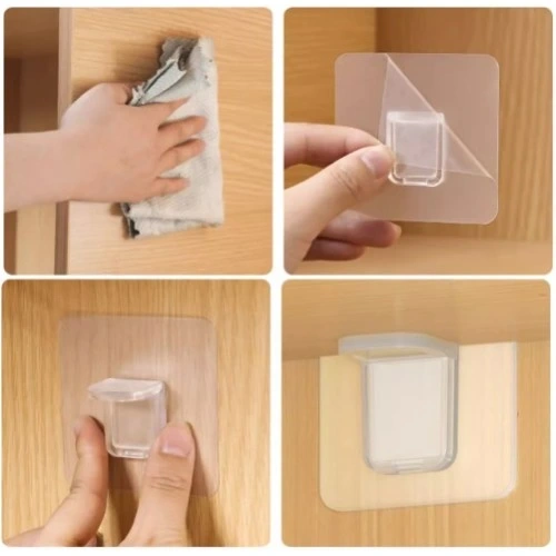 YAPIŞKANLI RAF TUTUCU SETİŞeffaf yapışkanlı raf tutucu aparatı sayesinde dolap içi raflarınızın yerlerini rahatlıkla değiştirebilirsiniz.Kırılan vidası düşen rafınız varsa çivi derdi olmadan ürününüzü bu ürün sayesinde orjinal bir şekilde kullanabilirsiniz.Kurulumu kolay: alet gerektirmez, dekoratif duvarınıza zarar vermez, fayans, duvar, dolap, ayakkabı rafları, kitaplık bölmesi gibi bir çok alanda kullanabilirsiniz. Renk: ŞeffafPaket İçeriği4 adet Set Raf Yapıcı Klips