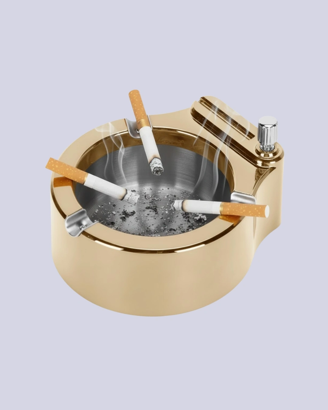 Paslanmaz gövdeli çakmaklı küllük, sağlam yapısı ve sade tasarımıyla dikkat çeker. Küllük ve çakmağın bir arada sunulması, kullanıcıya pratiklik sağlar. Masa üstü kullanım için idealdir. Metal malzeme, ürünü darbelere ve ısıya karşı dayanıklı hale getirir. Kolay temizlenebilir yüzeyi, hijyenik kullanım sunar. Çakmak bölümü çakmak benzini ile çalışır ve yeniden doldurulabilir yapıdadır. Yuvarlak formu sayesinde modern bir görünüm sunar ve farklı dekorasyonlarla uyum sağlar.