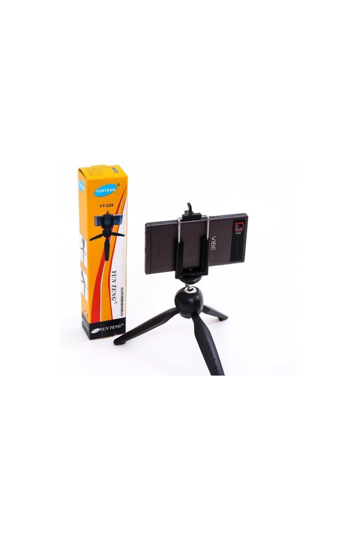 YT-228 Telefon Kamera Tripod Stand YT-228 Mini Tripod Ürün standart 1/4" tripod vidasına sahip küçük boyutlu ve oldukça sağlam bir tripoddur.; Hareketli kitlenebilir kafa dilediğiniz açıda çekim yapmanıza olanak tanır.; Ayak kısımlarındaki yumuşak lastikler sayesinde her yüzeye sağlamca tutunur.; Birçok cep telefonu, fotoğraf makinesı, aksiyon kamerası vb.; ürünle kullanılabilir.; Kapalı uzunluk: 21 cm Ayaklar açık yükseklik: 18.5 cm Ağırlık: 190g Taşıma kapasitesi: Max.; 2,5kgUyumlu cihazlar: Paket içeriğinde bulunan telefon bağlama aparatı sayesinde eni 55-85mm arası olan tüm cep telefonları ile uyumludur.; Dslr veya kompakt fotoğraf makineları ile el kameraları ile de uyumludur.; (bağlayacağınız cihazın çok ağır olmaması gerekir)Tripod bağlantı aparatına sahip tüm aksiyon kameraları ile de uyumludur.; Kısacası ürün üzerinde 1/4" vida yuvası bulunan tüm cihazlar ile uyum sağlar.; Paket İçeriği: YT-228 Mini tripod ve telefon bağlama aparatı