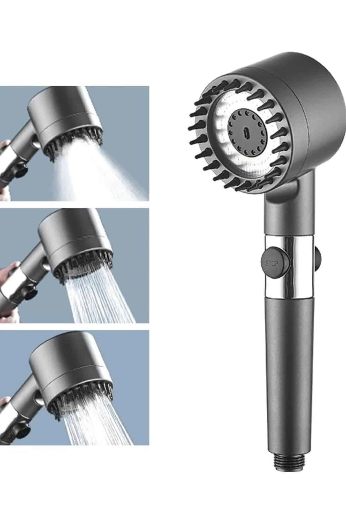 Krom kaplama malzemesiyle üretilmiş olan bu duş başlığı, hem estetik görünümüyle banyonuza şıklık katarken hem de uzun ömürlü ve dayanıklı bir kullanım sunar. Paslanmaya karşı dirençli yapısı sayesinde ilk günkü parlaklığını uzun süre korur ve günlük kullanımda yüksek performans sağlar. Üç farklı masaj modu sayesinde duş keyfinizi bambaşka bir seviyeye taşıyan bu ürün; rahatlatıcı, canlandırıcı ve derin doku masajı seçenekleriyle kişisel konforunuzu ön plana çıkarır. Günün stresini üzerinizden atmak veya güne zinde başlamak için ihtiyacınıza göre kolayca modlar arasında geçiş yapabilirsiniz.Kullanıcı dostu tasarımı sayesinde kurulumu oldukça basittir; ekstra bir ekipmana gerek kalmadan dakikalar içinde monte edilebilir. Ergonomik tutuşu ve su tasarrufu sağlayan yapısıyla hem çevre dostu hem de ekonomik bir kullanım sunar. Pratik kullanımı sayesinde her banyoya kolaylıkla entegre edilebilen bu duş başlığı, fonksiyonel ve şık bir banyo aksesuarı arayanlar için ideal bir seçimdir.