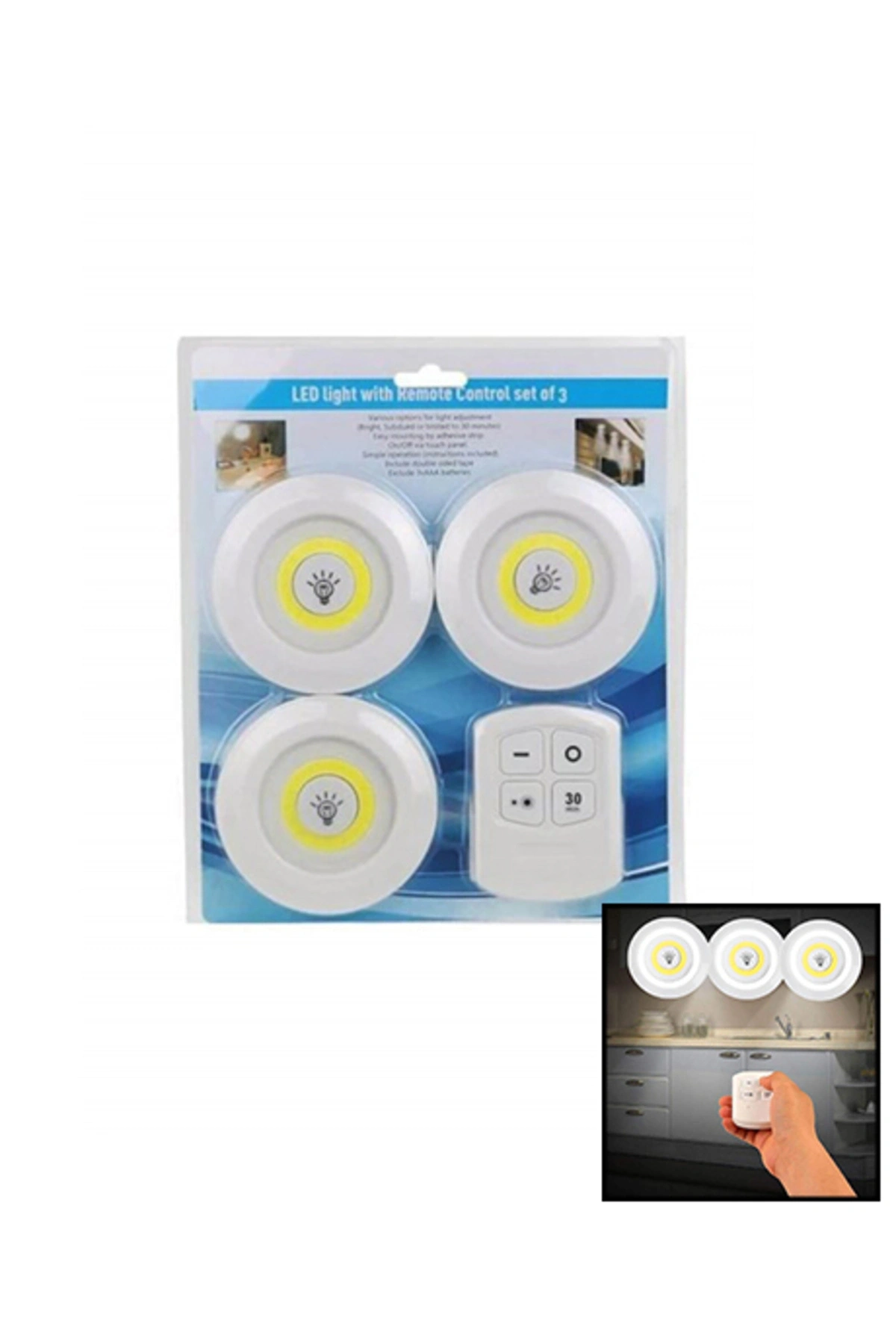 Uzaktan Kumandalı Yapışkanlı 3'lü Led Spot Lamba (5324)