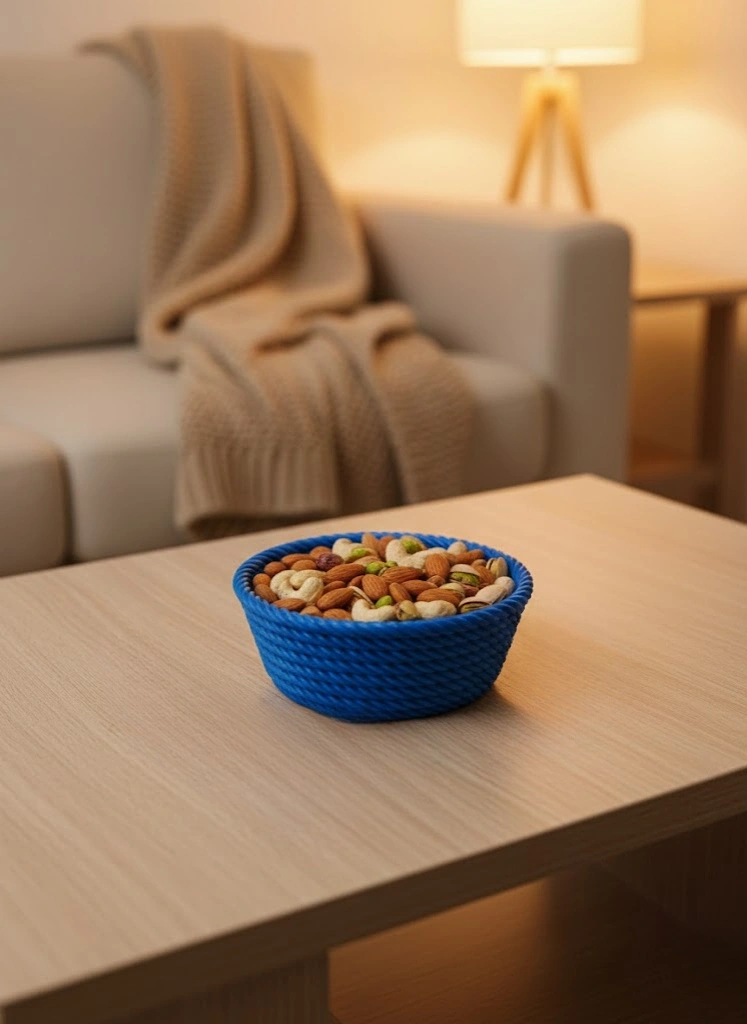 Yuvarlak Çerezlik Lacivert 4×12 cm ölçüsüyle salon, mutfak ve sehpa üstü kullanımlar için ideal bir dekoratif sunum ürünüdür. Kompakt boyutu sayesinde fazla yer kaplamadan çerez, kuru yemiş, draje ve küçük atıştırmalıkların şık şekilde servis edilmesini sağlar. Lacivert rengi bulunduğu ortama modern ve zarif bir dokunuş katar. Örgü dokulu dış yüzeyi ürüne hem estetik hem de dekoratif bir karakter kazandırır. Günlük kullanımda olduğu kadar misafir sunumlarında da tercih edilebilir. Salon sehpaları, orta masa, yan sehpa ve raf üstlerinde rahatlıkla konumlandırılabilir. Hafif yapısı sayesinde kolay taşınır ve farklı alanlarda pratik kullanım sunar. Çerez, fındık, badem, leblebi gibi kuru yemişlerin yanı sıra şekerleme ve lokum sunumlarında da kullanılabilir. Modern, bohem ve sade dekorasyon tarzlarıyla uyum sağlar. Lacivert rengi sayesinde açık ve koyu tonlu mobilyalarla dengeli bir görünüm oluşturur.