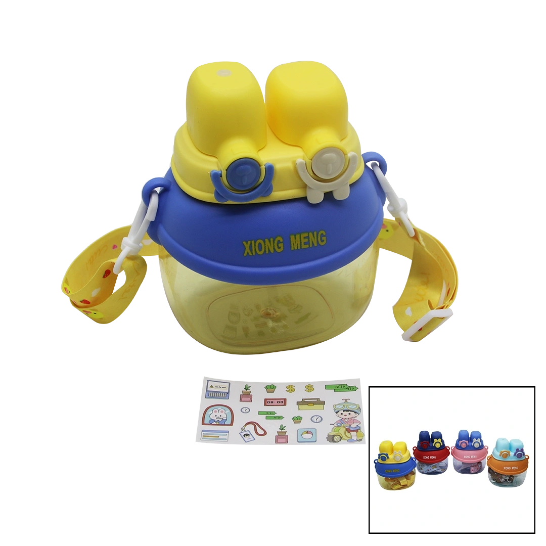 YÜZ MODELİ - 2 KİLİTLİ KAPAK RENKLİ MİKA KRİSTAL SULUK MATARA PİPETLİ - NAYLON ÇANTALI - ASKILI 1280ML (5324)